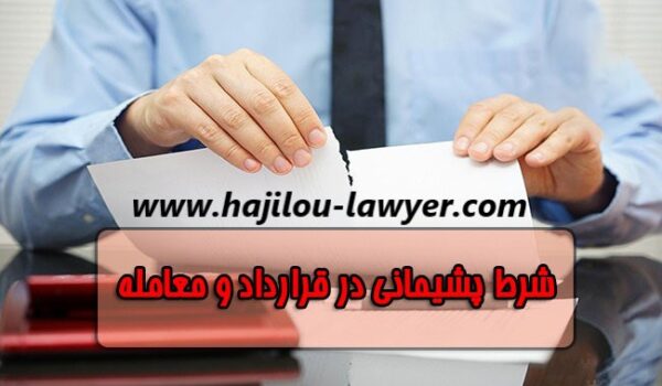 شرط پشیمانی در قرارداد ها به عنوان مبلغی جهت خسارت و همچنین بدون در نظر گرفتن تایم مشخص برای شرط پشیمانی در قرارداد یک امر عادی در جوامع امروزی به شمار می آید که اغلب بسیار دردسرساز خواهد بود. مشاوره حقوقی با بهترین وکیل در تهران متخصص در امور ملکی و تنظیم قرارداد ها، می تواند از ضرر و زیان احتمالی جلوگیری کند. با ما همراه باشید.